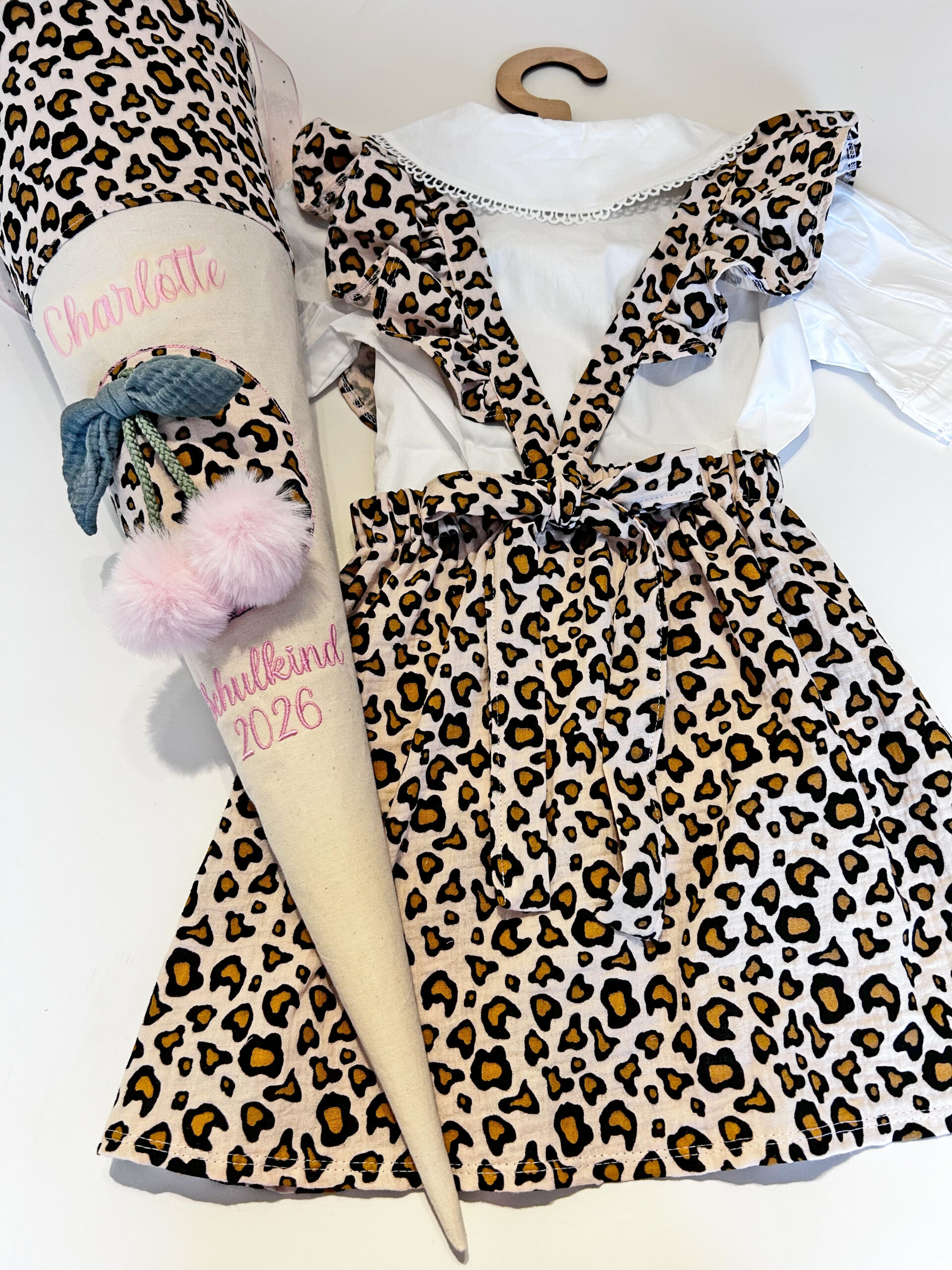 Dieser liebevoll genähte Latzrock mit Rüschen-Trägern, ist das perfekte Outfit für die Einschulung oder besondere Anlässe. Durch seine zeitlose Form lässt er sich wunderbar mit einem Hemd kombinieren und sorgt für einen festlichen aber dennoch bequemen Look am ersten Schultag.